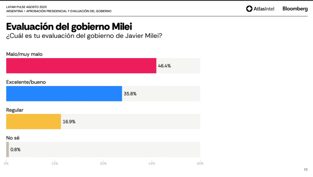 El relevo de percepciones negativas alcanza también al juicio generalizado sobre el gobierno, donde un 46,4% lo define como malo o muy malo. Un 36,9% de la población señala a la corrupción como el principal problema nacional, por encima incluso del desempleo y la inflación.