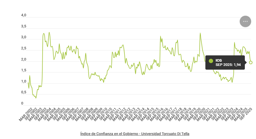 El Índice de Confianza en el Gobierno (ICG) midió en septiembre un valor de 1,94 puntos, lo que representa una caída del 8,2% respecto al mes anterior y el primer descenso por debajo de 2 puntos. Denuncias de corrupción en la Agencia Nacional de Discapacidad y la derrota electoral en Buenos Aires impactaron en la …