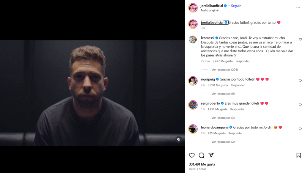 Jordi Alba, lateral izquierdo surgido en La Masia, dio a conocer este martes, a sus 36 años, que finalizará su carrera deportiva tras 17 temporadas. Lo hizo mediante un video emotivo publicado en sus redes sociales, donde repasó los motivos personales y profesionales para tomar esta decisión.