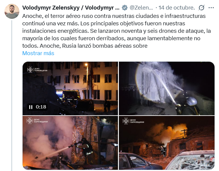 Ucrania vive una grave crisis energética tras una oleada reciente de ataques rusos a infraestructuras clave. Durante los días 14 y 15 de octubre de 2025, las fuerzas rusas dirigieron misiles y drones a plantas eléctricas y depósitos de gas en regiones como Kiev, Odesa, Lviv y otras partes del país, afectando la continuidad del suministro eléctrico.