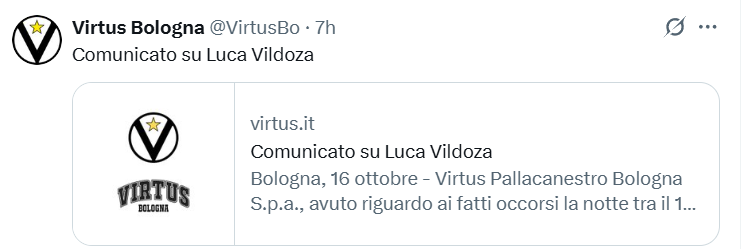 El club Virtus Bologna confirmó su respaldo a Vildoza y aseguró que acompañará al equipo en el próximo compromiso oficial en Lyon.