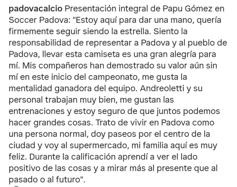 Padova se encuentra en la mitad de la tabla de posiciones de la Serie B y aspira a escalar para pelear por un lugar en el ascenso a la Serie A. La incorporación de Gómez busca aportar jerarquía y experiencia a un plantel que necesita impulso en la segunda parte de la temporada.