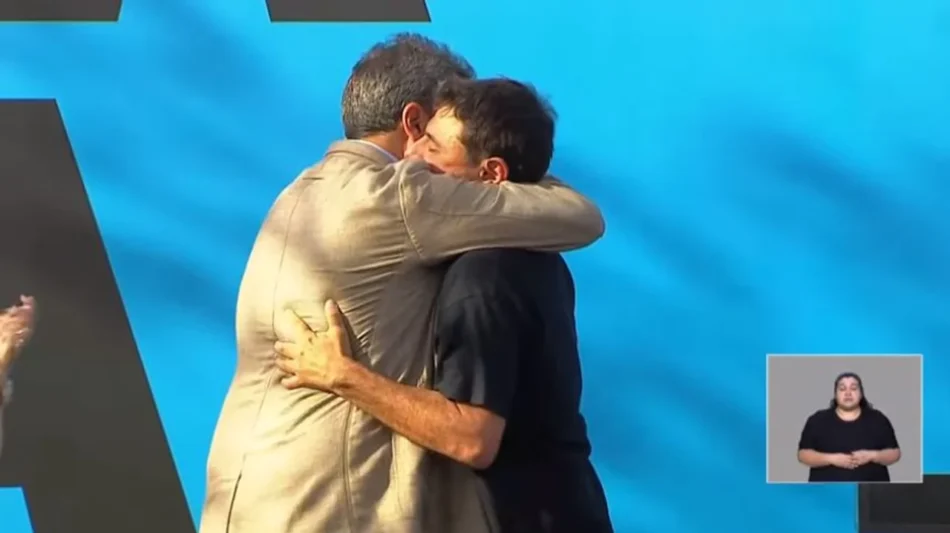 “Quiero hacer una mención especial al compañero Sergio Tomás, con el que cada tanto me peleo un poquito. Me ayudó mucho en la campaña”, reconoció Grabois, quien tras su discurso se fundió en un abrazo con el ex intendente de Tigre.