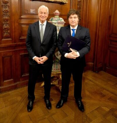 El presidente Javier Milei y parte de su equipo económico mantuvieron este viernes un encuentro privado con Jamie Dimon, CEO de JP Morgan, en el Museo Nacional de Arte Decorativo de Buenos Aires. La reunión fue parte de una agenda que busca garantizar líneas de crédito tras el acuerdo de asistencia del Tesoro de Estados …