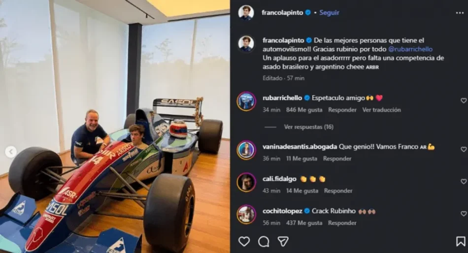 “Ojo con el asador, eh. Rubens Barrichello, algo aprendiste en Argentina. La rompiste, gracias, amigo” comentó Colapinto en sus redes y aseguró que es “de las mejores personas que tiene el automovilismo. Gracias por todo. Un aplauso para el asador, pero falta una competencia de asado brasileño y argentino”.