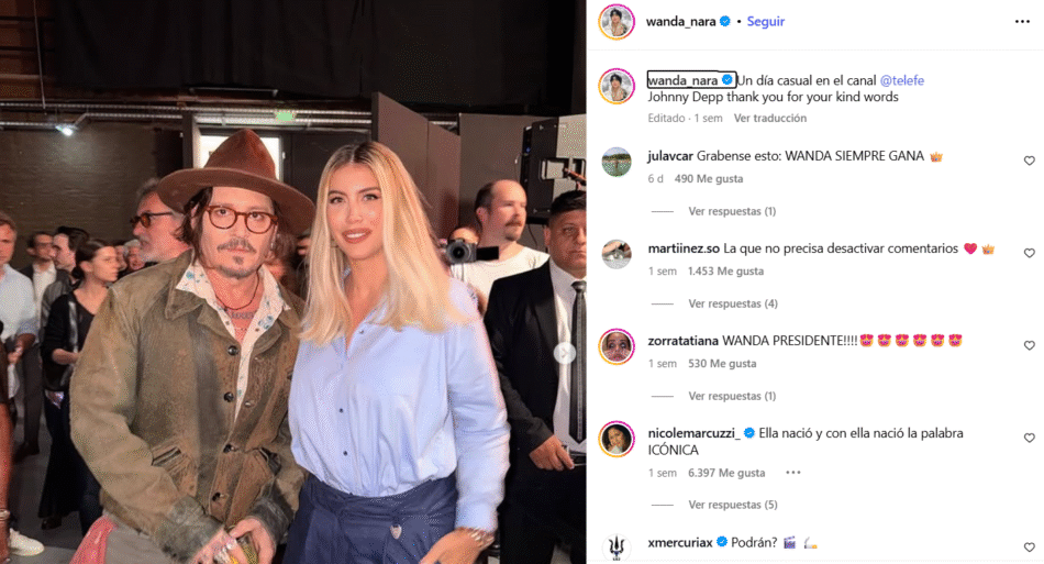 La conductora se tomó una foto con el actor durante su visita a Telefe, generando polémica por su impacto en la relación con Mauro Icardi y tensiones internas en el canal. El gesto fue interpretado como una provocación y afectó a Verónica Lozano, otra personalidad del canal.