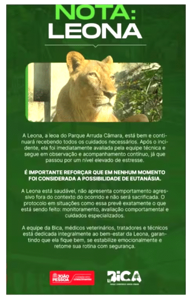 Un trágico suceso conmocionó a la localidad brasileña de João Pessoa (Estado de Paraíba). Un hombre perdió la vida este domingo en el zoológico Parque Arruda Câmara, tras ser atacado por un león dentro del recinto del felino. El incidente se produjo después de que la víctima, cuya identidad no ha sido revelada, escalara un muro de seis metros, con ayuda de un árbol, para acceder ilegalmente al espacio del animal.