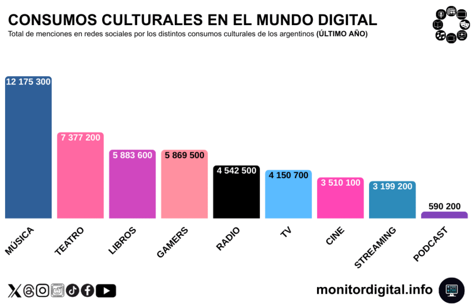 Un informe reciente analiza los hábitos de conversación de los argentinos en redes sociales sobre consumos culturales, revelando que la música es la “lengua franca” indiscutida, mientras que el streaming se consolida como un duopolio que genera grandes picos de debate, pero con un clima de marcada disputa y negatividad.
