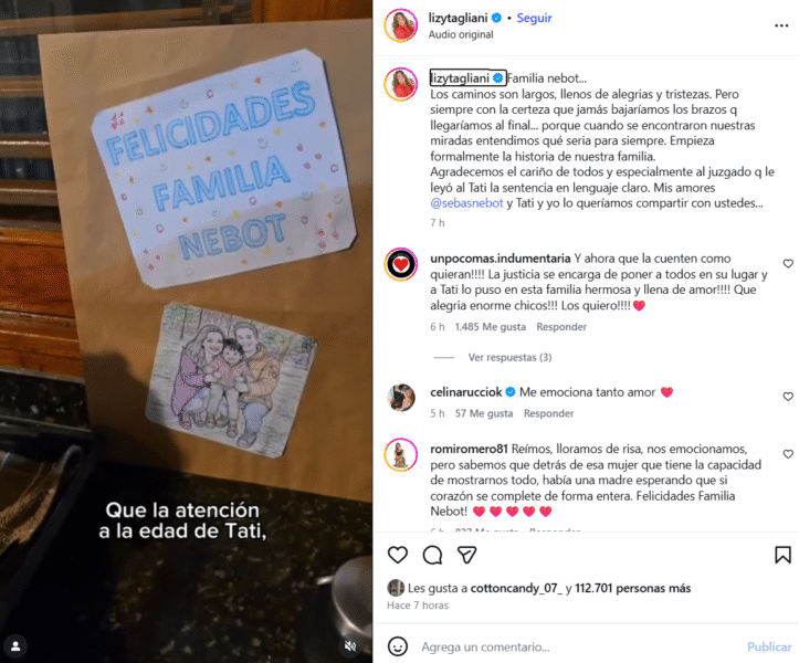 La Justicia argentina dictó la sentencia de adopción plena de Tati, el niño de cinco años que convivía bajo el régimen de guarda con la conductora Lizy Tagliani y su esposo, Sebastián Nebot.