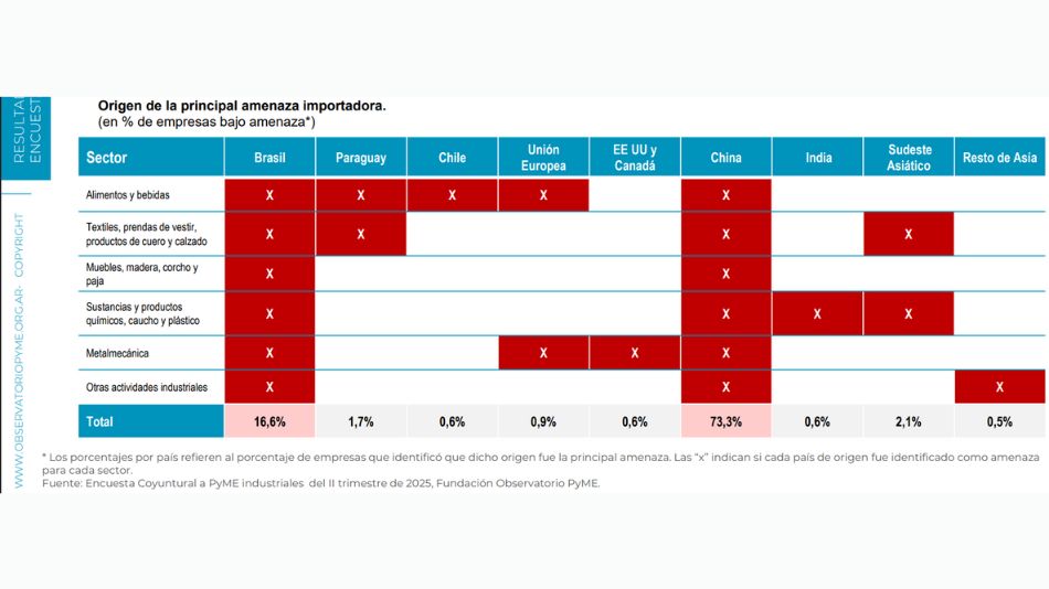 Uno de los datos más alarmantes del informe es la pérdida de mercado frente a la competencia extranjera. El 37% de las pymes industriales declaró haber reducido su participación local ante las importaciones, una cifra que representa un máximo histórico para la serie que se mide desde 2007.