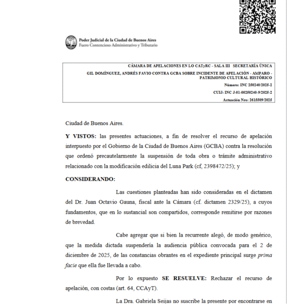 El fallo de la Cámara porteña coincidió con el dictamen del fiscal Juan Octavio Gauna. La justicia determinó que autorizar las obras significaría un daño irreversible para el patrimonio cultural.