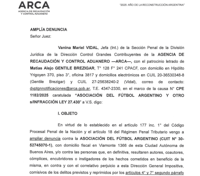 La Justicia en lo Penal Económico formalizó una investigación que coloca bajo la lupa el manejo financiero de la Asociación del Fútbol Argentino (AFA). El fiscal Claudio Roberto Navas Rial impulsó la imputación contra el presidente de la entidad, Claudio “Chiqui” Tapia, y su tesorero, Pablo Toviggino, tras una denuncia presentada por la Agencia de Recaudación y Control Aduanero (ARCA).