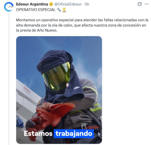 Edesur comunicó la implementación de un operativo especial con cuadrillas técnicas para trabajar durante la víspera de las festividades. Sin embargo, no se estableció un horario preciso para la solución definitiva de los reclamos.