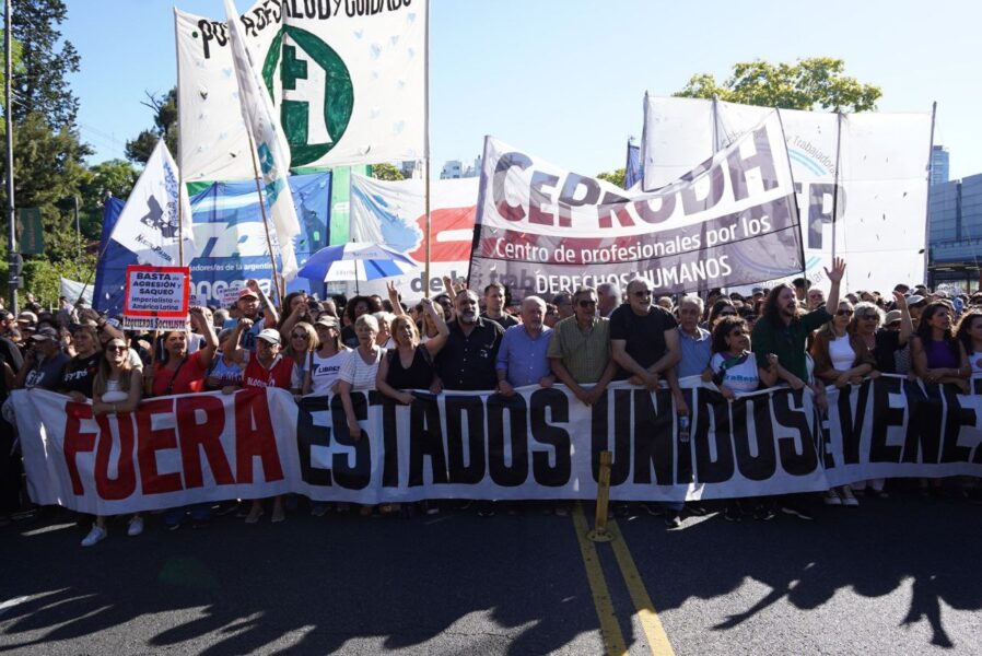 Diversos sindicatos y partidos de izquierda se movilizaron en Buenos Aires para repudiar la intervención militar en Caracas. Los manifestantes exigieron la libertad de Nicolás Maduro y solicitaron un pronunciamiento oficial por parte del Congreso de la Nación.