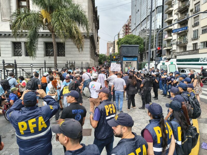 Más tarde, efectivos de Gendarmería se sumaron al despliegue desde la Avenida Entre Ríos, reforzando una presencia policial que resultó desproporcionada ante el número de participantes.