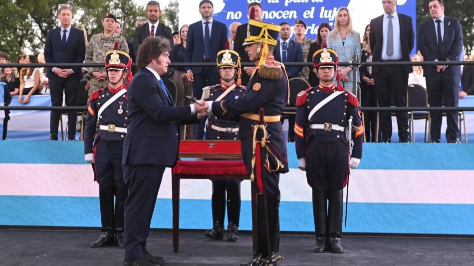 En un acto cargado de simbolismo histórico, el Presidente entregó el arma del Libertador al Regimiento de Granaderos. Destacó que el sable no es un “objeto neutro”, sino el emblema de una lucha contra un “Estado tiránico”.