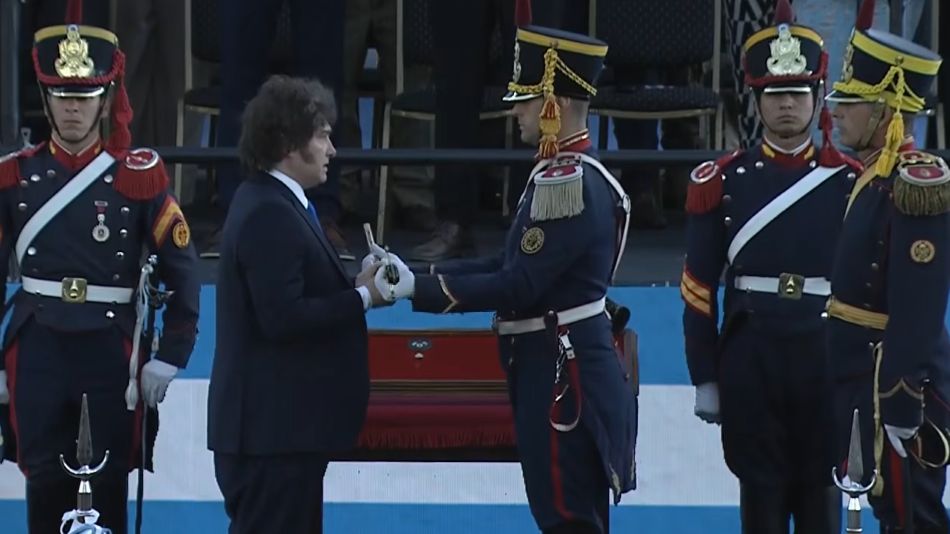 En un acto cargado de simbolismo histórico, el Presidente entregó el arma del Libertador al Regimiento de Granaderos. Destacó que el sable no es un “objeto neutro”, sino el emblema de una lucha contra un “Estado tiránico”.