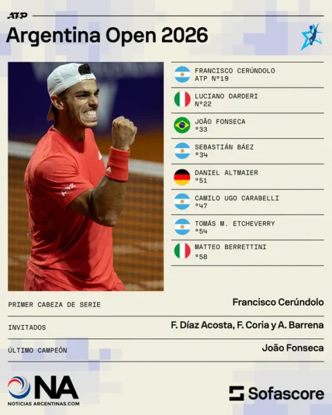 El cuarto cabeza de serie será Sebastián Báez (34°), que tuvo su última presentación el pasado miércoles 21 de enero cuando perdió con el italiano Lorenzo Dardieri en la segunda ronda del Australian Open. El oriundo del municipio bonaerense de San Martín debutará el miércoles ante el ganador del partido entre el peruano Ignacio Buse y el italiano Francesco Passaro.