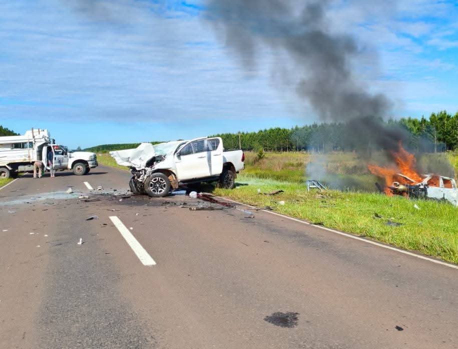 Un accidente en la ruta nacional 12, a la altura de Ituzaingó, Corrientes, dejó cuatro víctimas fatales y un herido. Dos camionetas colisionaron a alta velocidad; una de ellas se incendió atrapando a dos ocupantes.