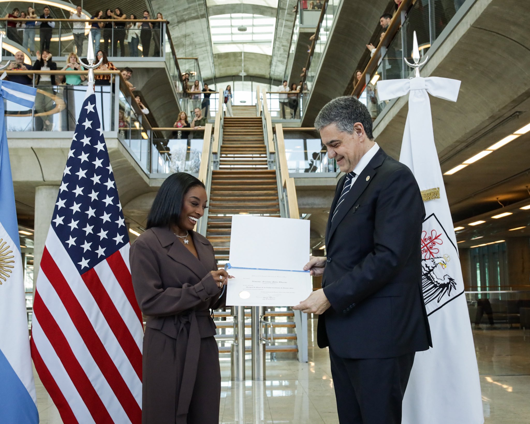 Simone Biles, la reconocida gimnasta estadounidense, llegó a la Ciudad Autónoma de Buenos Aires (CABA) y fue distinguida como huésped de honor. Durante su visita, ofreció una conferencia motivacional sobre la importancia de la perseverancia y la resiliencia para superar adversidades, en un contexto marcado por la candidatura de Buenos Aires para los Juegos Olímpicos.