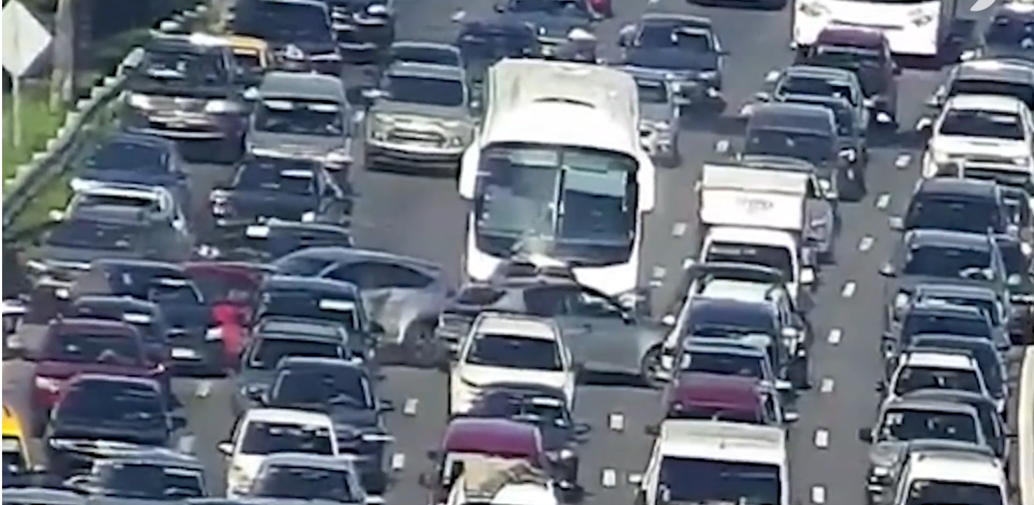 Un micro sin pasajeros colisionó con nueve autos en la avenida General Paz a la altura de Avenida del Libertador, provocando demoras y congestionamiento. Un hombre fue hospitalizado con politraumatismos.